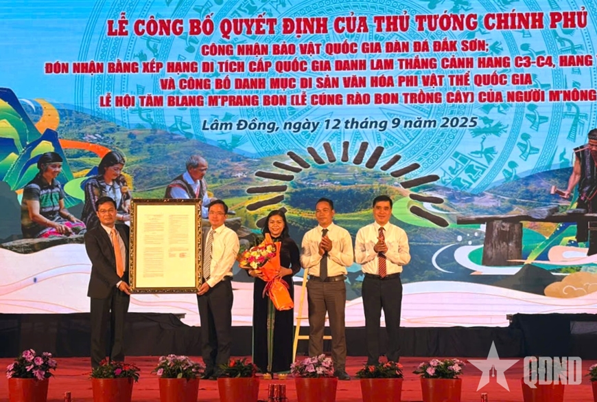 Sáng 12-9, UBND tỉnh Lâm Đồng tổ chức Lễ công bố Quyết định của Thủ tướng Chính phủ công nhận Bảo vật quốc gia Đàn đá Đắk Sơn.