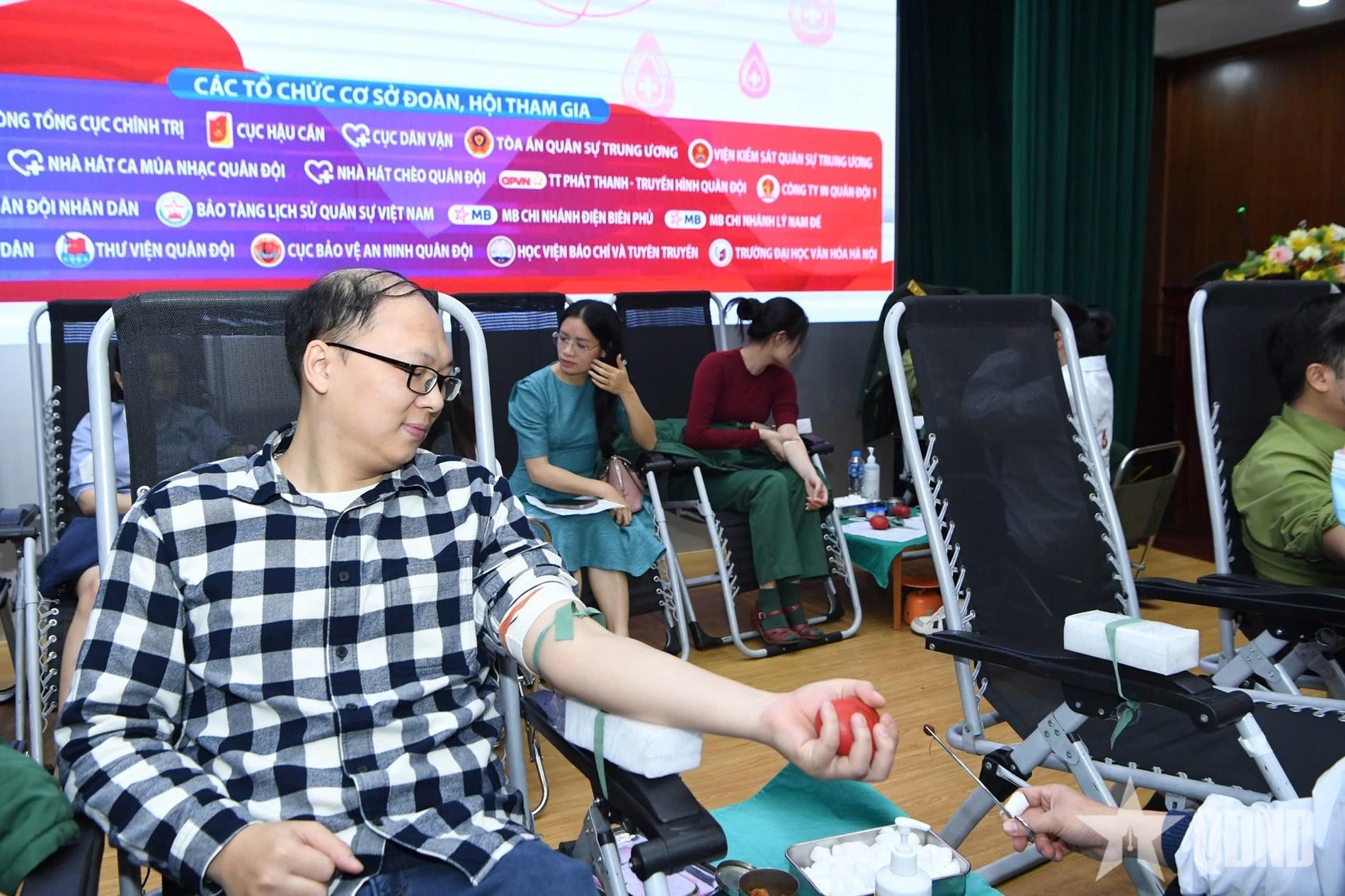 | Lãnh đạo Báo QĐND tham gia hiến máu. |