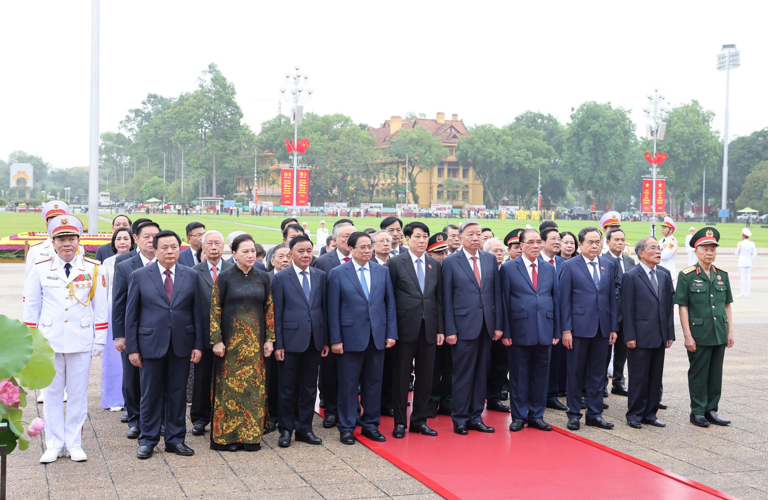 Sáng 19/5, Đoàn đại biểu lãnh đạo Đảng, Nhà nước, Quốc hội, Chính phủ và Ủy ban Trung ương Mặt trận Tổ quốc Việt Nam vào Lăng viếng Chủ tịch Hồ Chí Minh nhân kỷ niệm 135 năm ngày sinh của Bác (19/5/1890 - 19/5/2025).