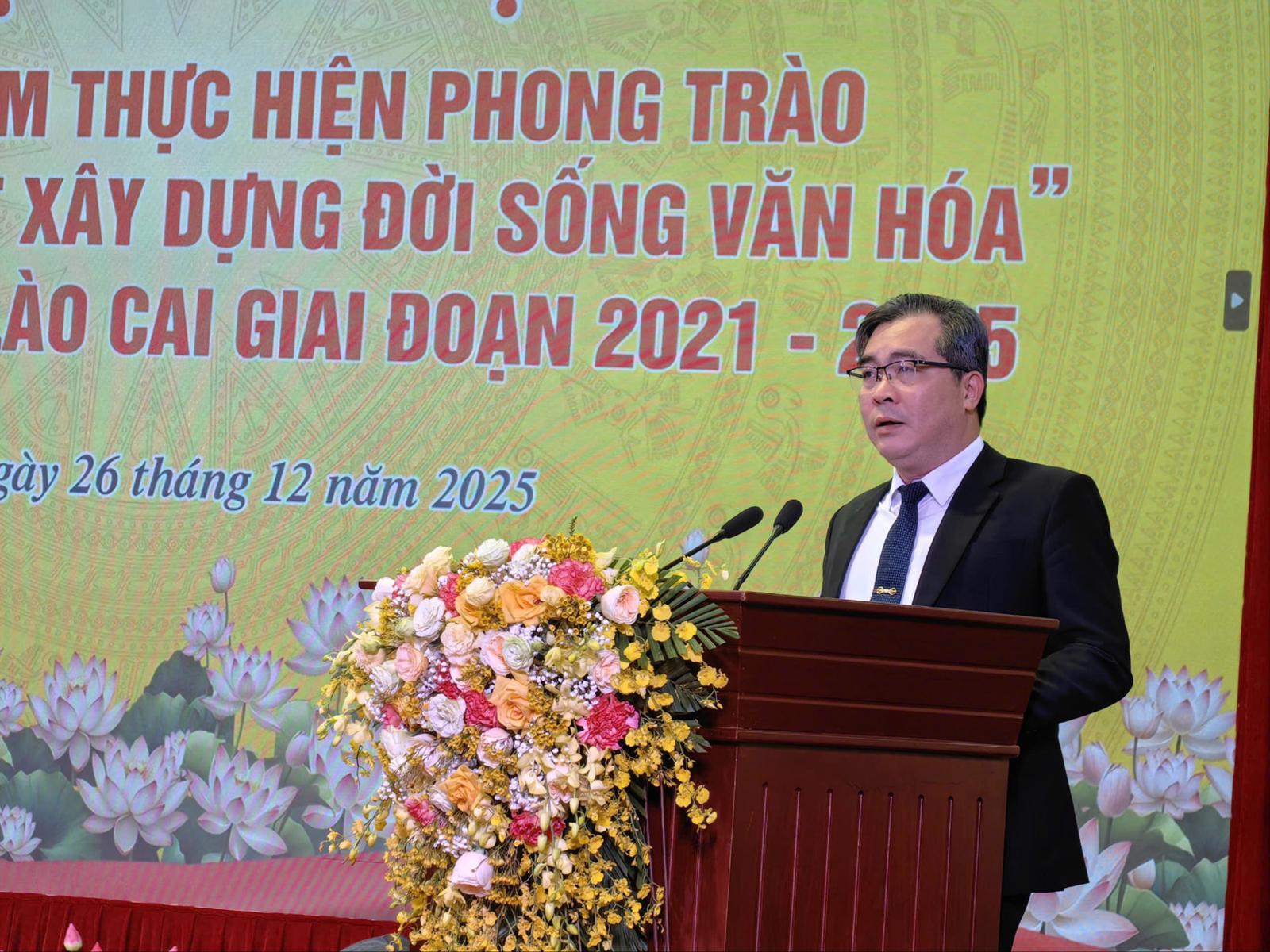 Sáng 26/12, UBND tỉnh Lào Cai tổ chức Hội nghị tổng kết 5 năm thực hiện phong trào “Toàn dân đoàn kết xây dựng đời sống văn hóa” giai đoạn 2021–2025, đồng thời xác định phương hướng, nhiệm vụ và giải pháp triển khai phong trào đến năm 2030.