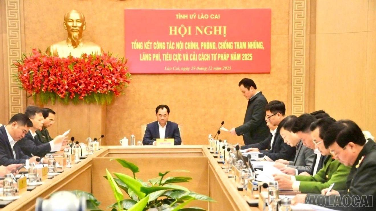 Năm 2025, Ban Thường vụ Tỉnh ủy Lào Cai đã tập trung lãnh đạo, chỉ đạo các cấp ủy, tổ chức Đảng, cơ quan, đơn vị và địa phương triển khai thực hiện hiệu quả chương trình công tác nội chính, phòng, chống tham nhũng, lãng phí, tiêu cực và cải cách tư pháp, bám sát yêu cầu nhiệm vụ chính trị của tỉnh. Các chủ trương, giải pháp được triển khai đồng bộ, có trọng tâm, trọng điểm, phù hợp với tình hình thực tiễn.