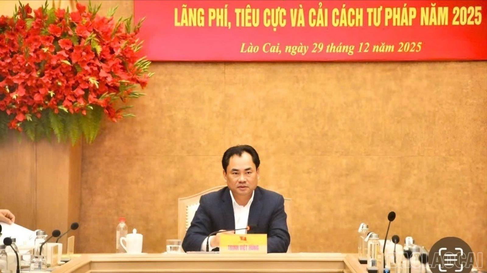 Tại hội nghị tổng kết công tác nội chính, phòng, chống tham nhũng, lãng phí, tiêu cực và cải cách tư pháp năm 2025 của tỉnh Lào Cai, diễn ra ngày 29/12, ông Trịnh Việt Hùng, Bí thư Tỉnh ủy yêu cầu các cấp ủy, tổ chức Đảng, cơ quan, đơn vị, địa phương và khối nội chính tiếp tục quán triệt sâu sắc các chủ trương của Đảng, có kế hoạch cụ thể nhằm nâng cao hơn nữa hiệu quả công tác nội chính, phòng, chống tham nhũng, lãng phí, tiêu cực và cải cách tư pháp trong thời gian tới.