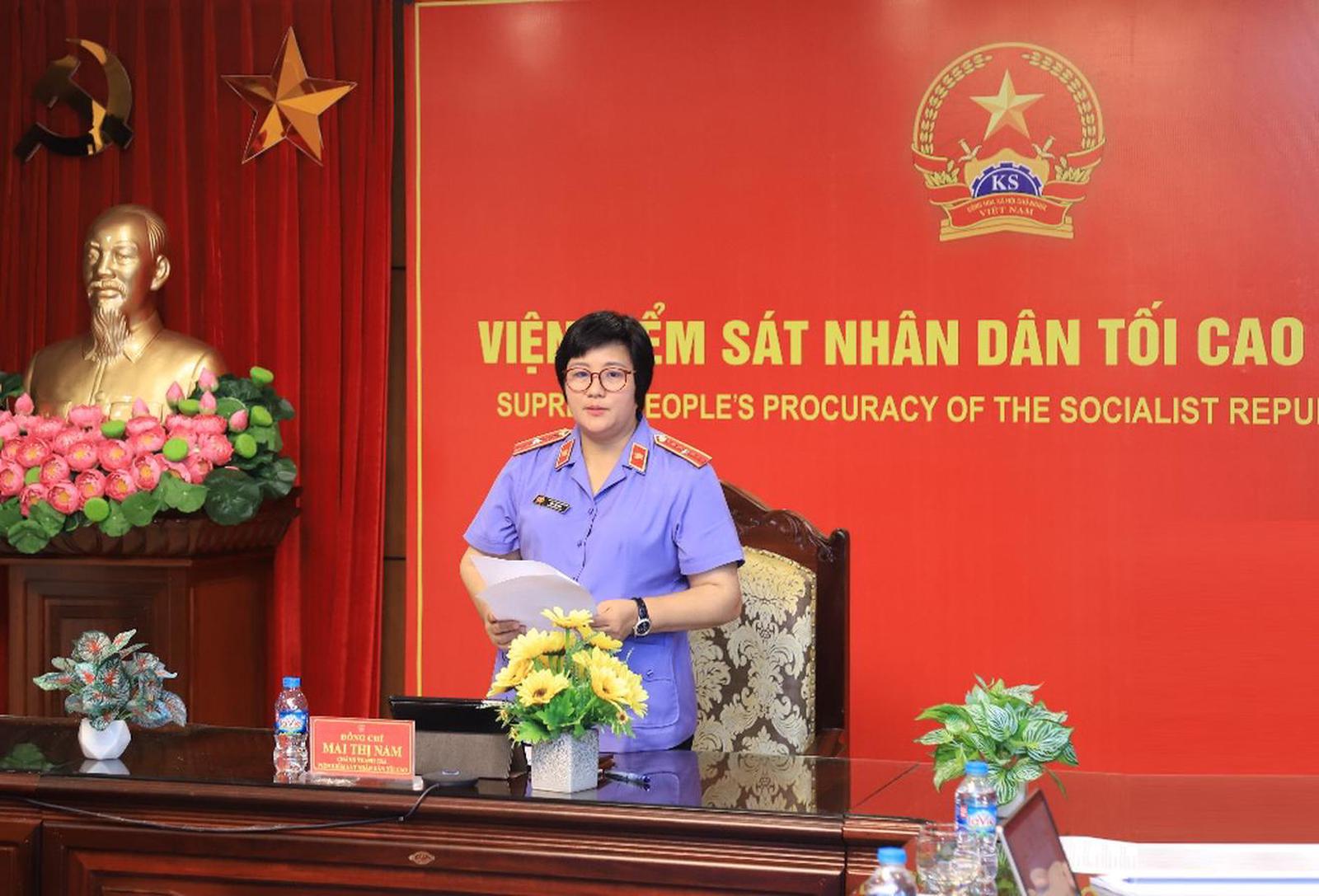 Chánh Thanh tra VKSND Tối cao Mai Thị Nam phát biểu tại một hội nghị. Ảnh: VKSND Tối cao