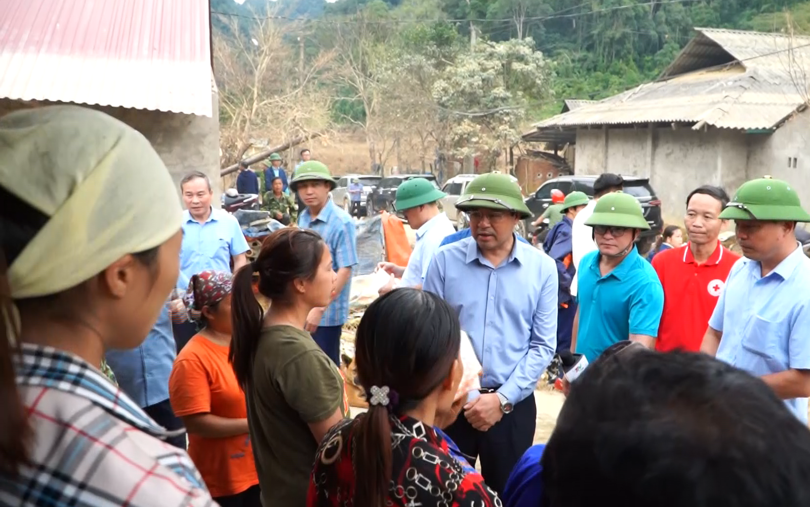 Ông Trịnh Xuân Trường, Bí thư Tỉnh ủy Thái Nguyên kiểm tra công tác khắc phục hậu quả sau cơn bão số 11, tặng quà hỗ trợ người dân tại xã Vĩnh Thông và xã Văn Lang.