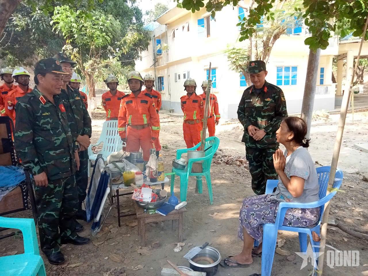 “Tôi muốn gửi lời cảm ơn chân thành tới cả đoàn. Tối nào về nhà anh Myat cũng kể với tôi về các bạn. Anh ấy nói rằng đoàn Việt Nam rất giỏi và không chỉ mang theo con người mà còn nhiều thiết bị cứu hộ cần thiết để giúp chúng tôi”, vợ của Đại úy Myat chia sẻ với phóng viên Báo Quân đội nhân dân.
