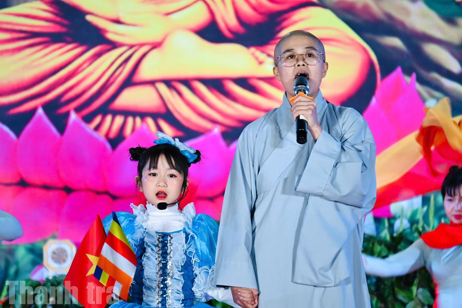 Phần biểu diễn ca khúc Viết tiếp câu chuyện hoà bình được dàn dựng công phu với sự tham gia của các tăng, ni sinh cùng nhiều em nhỏ tạo ra những đại cảnh xúc động.