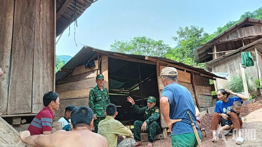 | Cán bộ Đồn Biên phòng Mỹ Lý tiếp cận, động viên nhân dân bản biên giới. |