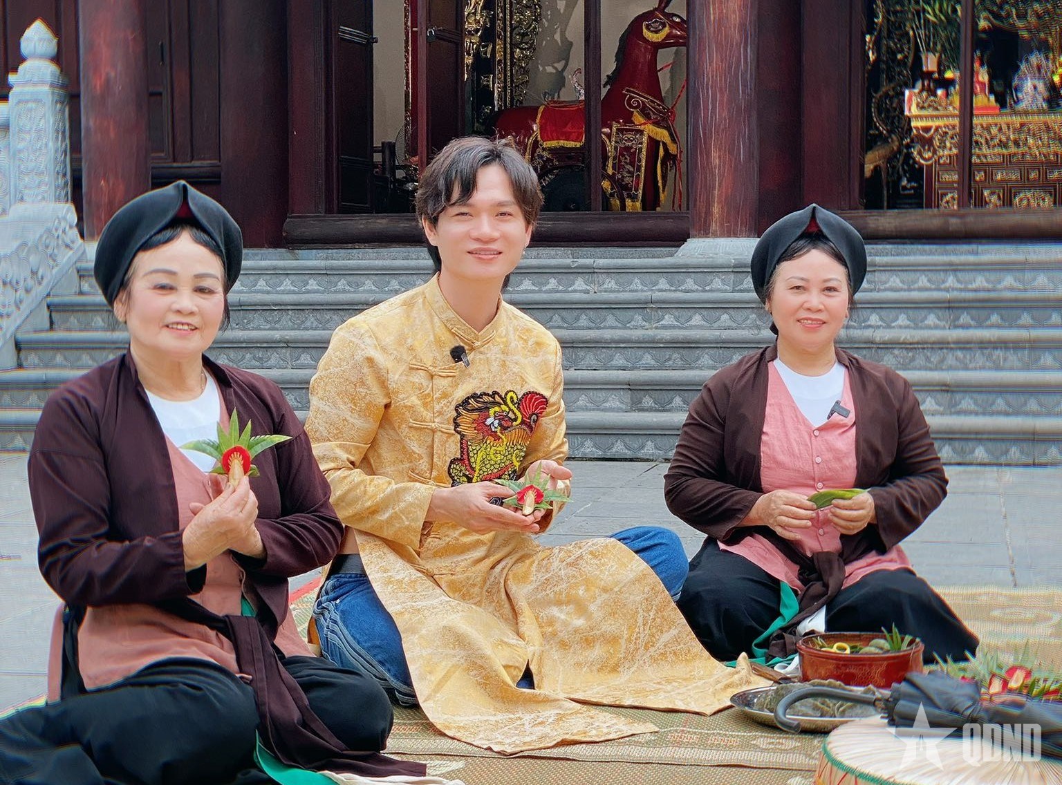 | Nhạc sĩ Tuấn Cry cùng các nghệ nhân quan họ Bắc Ninh tham gia trong một dự án nghệ thuật. Ảnh NVCC |