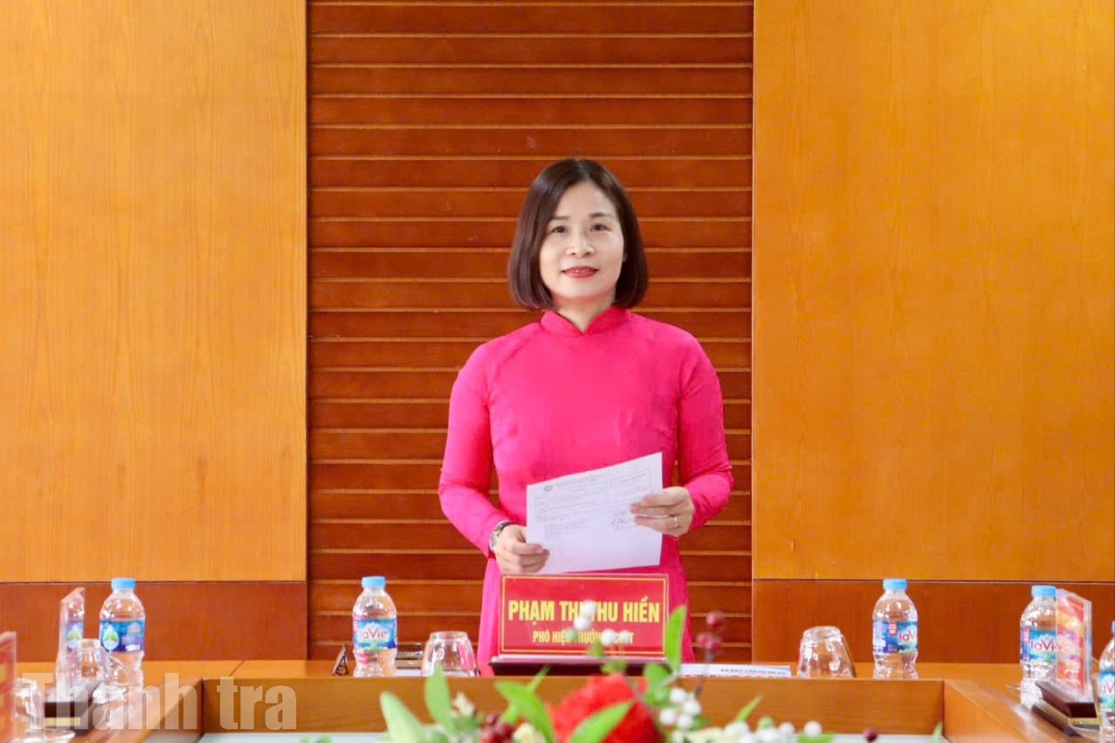 Phó Hiệu trưởng Trường Cán bộ Thanh tra Phạm Thị Thu Hiền bày tỏ niềm vui khi được đón tiếp Đoàn. Ảnh: TT