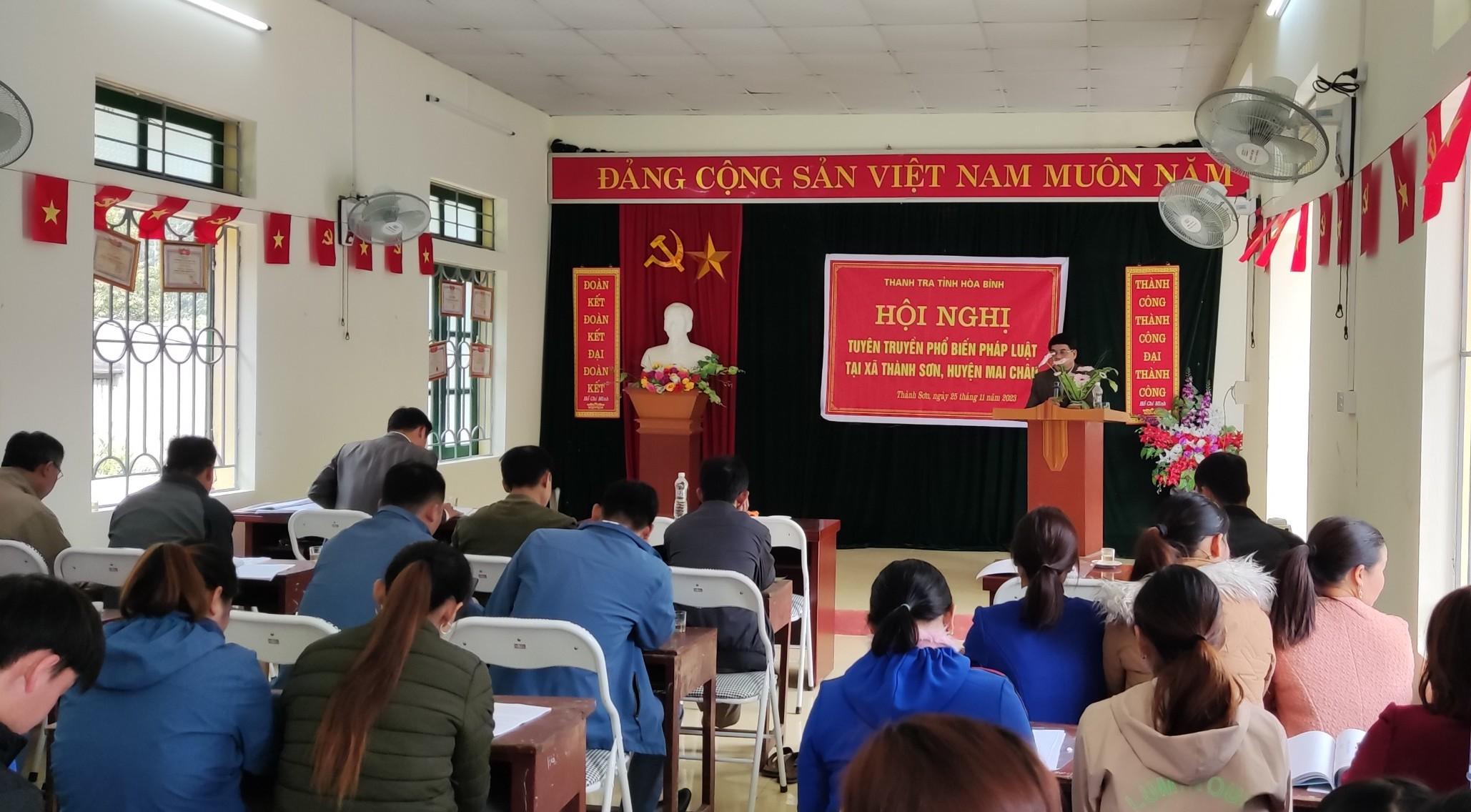 Thanh tra tỉnh Hoà Bình tuyên truyền pháp luật cho cán bộ, Nhân dân xã Thành Sơn, huyện Mai Châu. Ảnh: TK