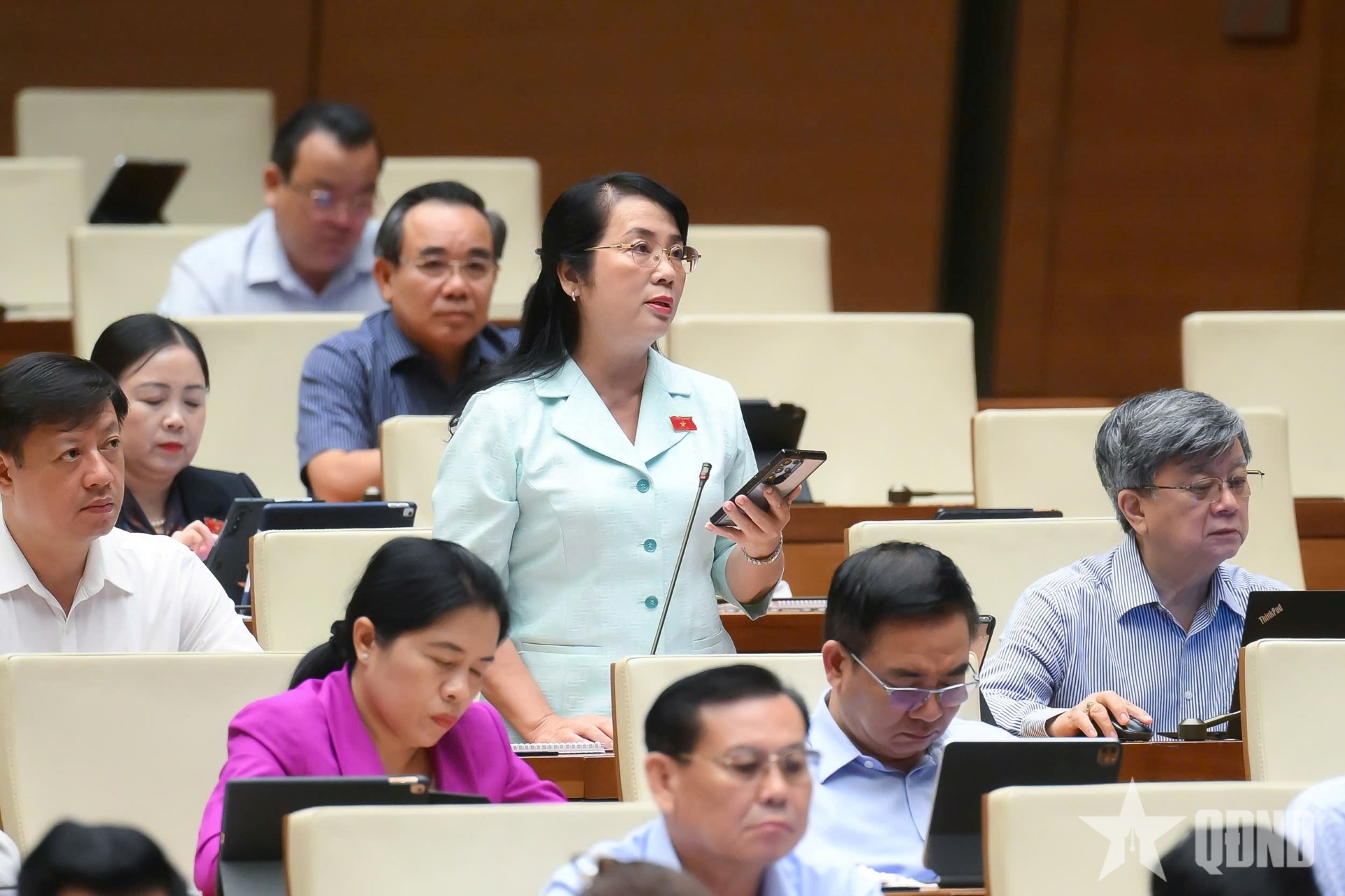 | Đại biểu Trần Kim Yến (Thành phố Hồ Chí Minh) chất vấn Bộ trưởng Bộ Tài chính. Ảnh: TRỌNG HẢI |