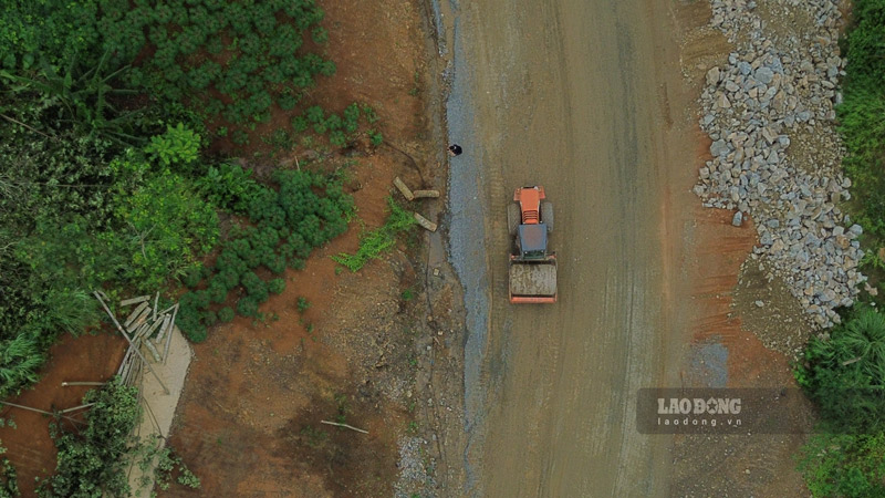 Trên công trường, hàng chục công nhân cùng nhiều máy móc, thiết bị đang khẩn trương san gạt nền đường, làm rãnh thoát nước, đổ bê tông tại các đoạn còn lại. Không khí lao động diễn ra khẩn trương, tập trung cho giai đoạn hoàn thiện.