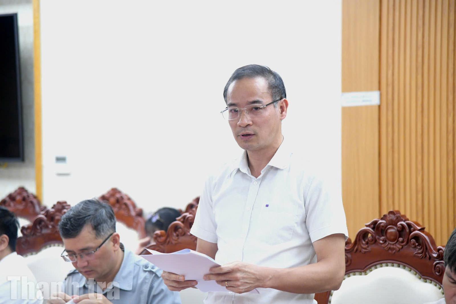 Vụ trưởng Vụ Kế hoạch - Tài chính Lê Quang Linh báo cáo tại cuộc họp. Ảnh: Quang Huy