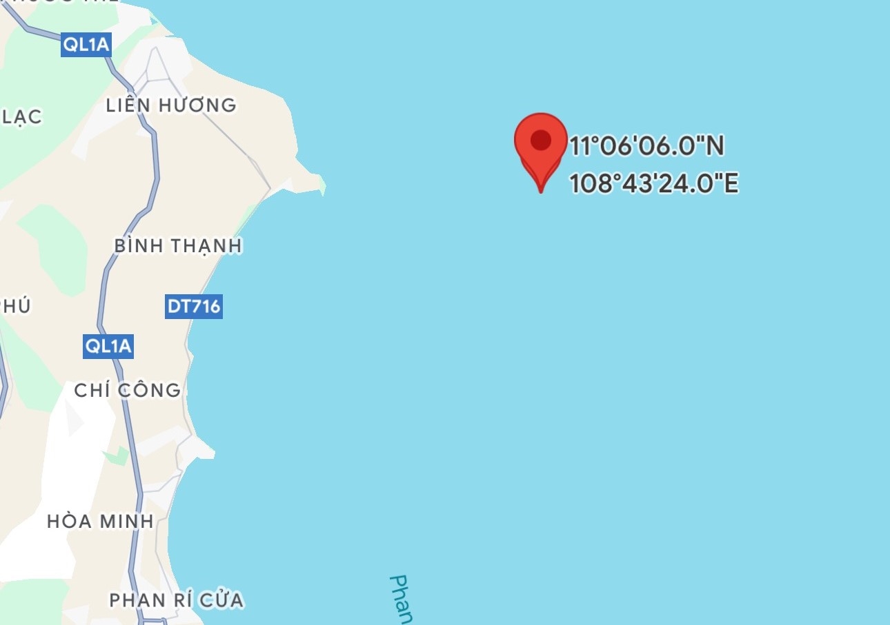 Vị trí tọa độ nơi tàu cá neo đậu bị tàu hàng đâm chìm. Ảnh: Google Maps