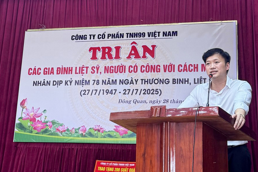Tại buổi lễ, ông Phạm Hữu Hải – Phó Tổng Giám đốc Công ty Cổ phần TNH99 Việt Nam bày tỏ lời tri ân sâu sắc tới các thế hệ cha anh đã hy sinh xương máu vì nền độc lập của dân tộc và trao tặng 200 suất quà, mỗi suất quà trị giá 1.000.000 đồng. Tổng giá trị quà tặng là 200.000.000 đồng. Dù giá trị vật chất không quá lớn, nhưng mỗi phần quà là tấm lòng thành kính, là sự tri ân sâu sắc của Công ty Cổ phần TNH99 Việt Nam đối với những người đã cống hiến tuổi xuân, máu xương và cả những hy sinh thầm lặng cho độc lập, tự do của Tổ quốc.