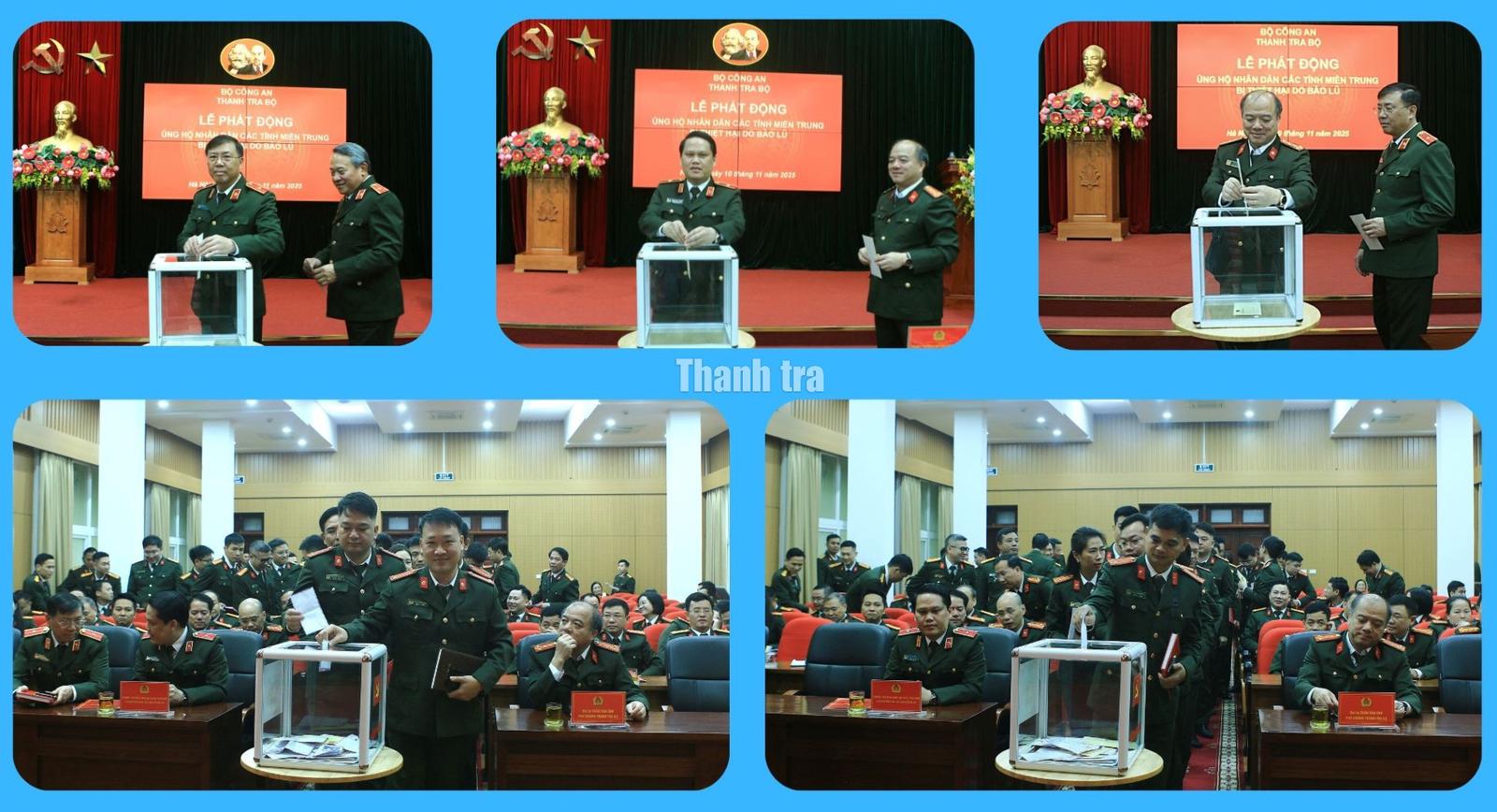 Ngày 10/11/2025, tại Hà Nội, Thanh tra Bộ Công an đã tổ chức lễ phát động ủng hộ Nhân dân các tỉnh miền Trung bị thiệt hại do bão lũ. Thiếu tướng Bùi Quang Thanh, Chánh Thanh tra Bộ Công an chủ trì buổi lễ.