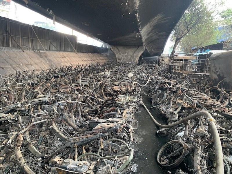 Vụ cháy bãi trông giữ xe dưới gầm cầu Vĩnh Tuy. Ảnh: Báo Nhân dân