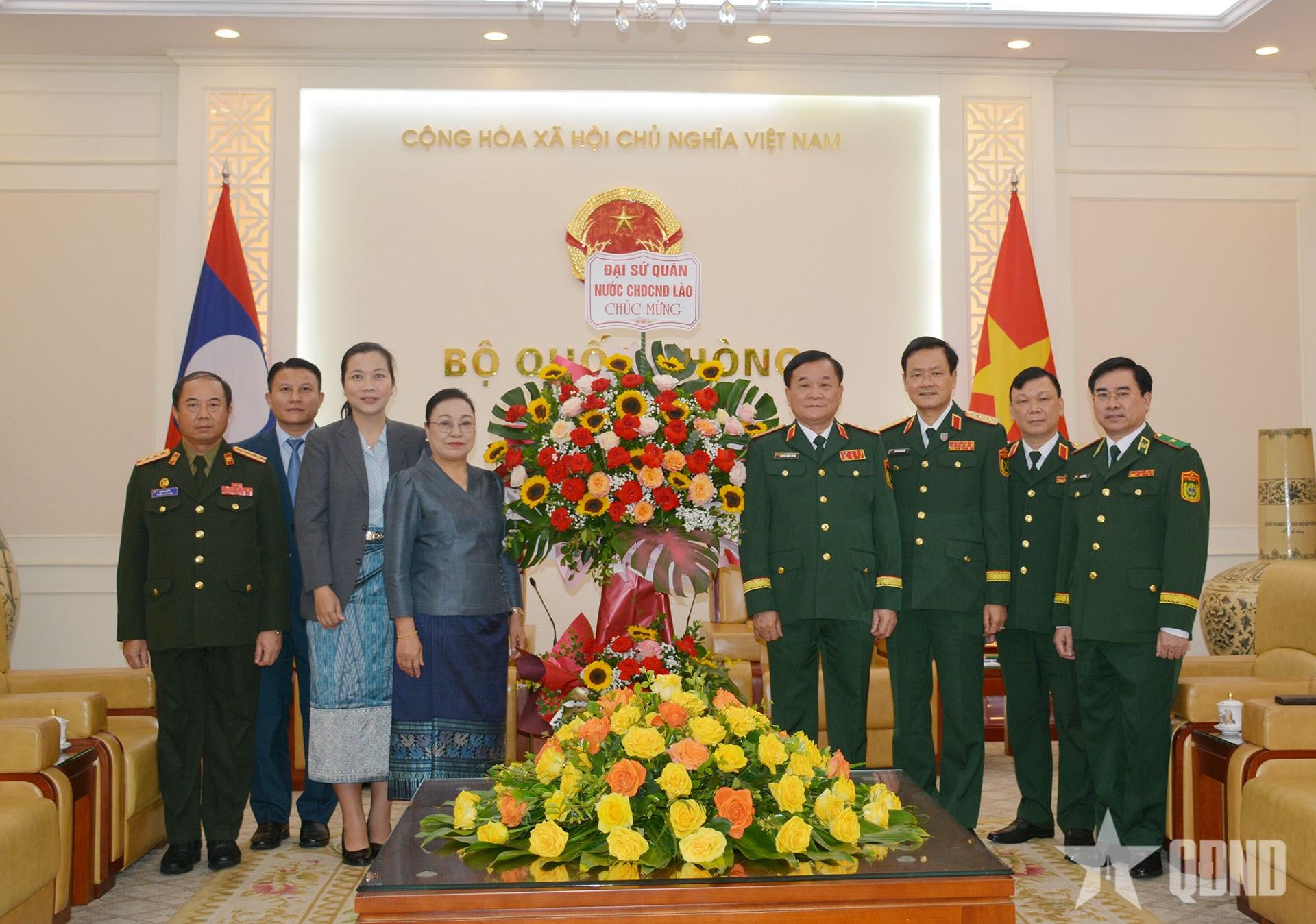 Đại sứ Khamphao Ernthavanh đánh giá cao kết quả hợp tác quốc phòng Việt Nam-Lào thời gian qua, trong đó có đào tạo nguồn nhân lực, tăng cường hợp tác bảo vệ biên giới hai nước...