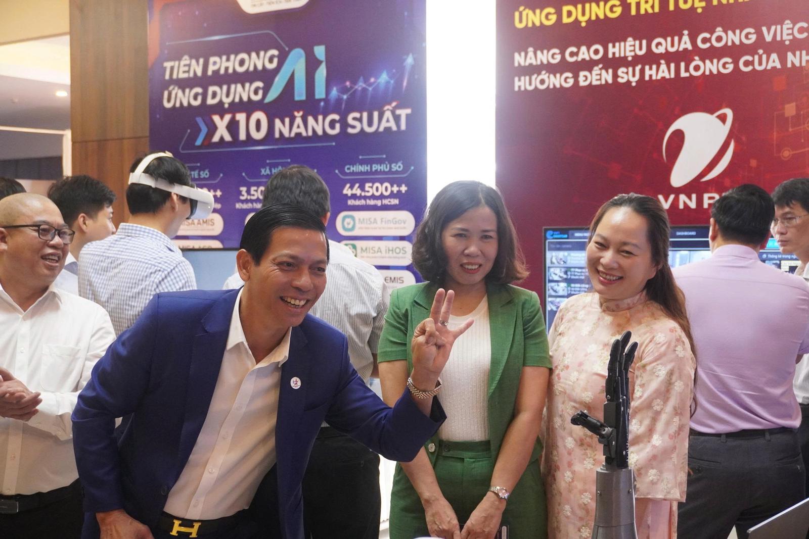 Nhân viên Công ty Cổ phần Công nghệ VN168 hướng dẫn cán bộ, người dân phường Cư Bao (Đắk Lắk) sử dụng công cụ AI. Ảnh: KL
