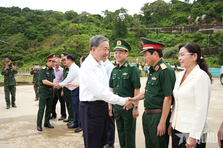 | Tổng Bí thư Tô Lâm cùng đoàn công tác Trung ương đến thăm, làm việc với các đơn vị Quân đội đóng quân trên đảo và Đảng bộ, chính quyền tỉnh Cà Mau. |