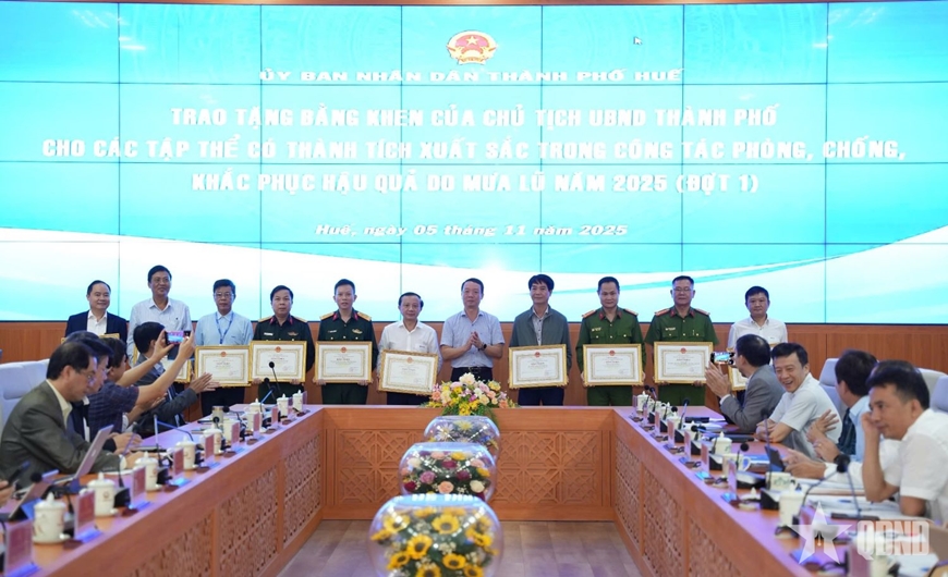 Ngày 5-11, UBND TP Huế tổ chức khen thưởng các tập thể có thành tích xuất sắc trong công tác phòng, chống và khắc phục hậu quả mưa lũ năm 2025 (đợt 1).