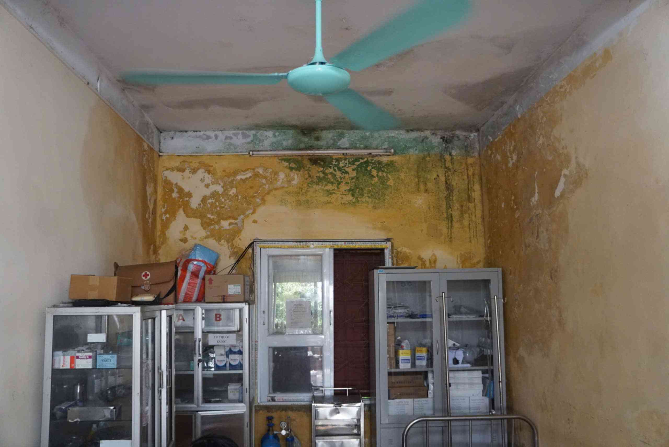 Nhiều phần tường của trạm y tế bị ẩm mốc, thấm nước và mọc rêu. Ảnh: Công Hòa