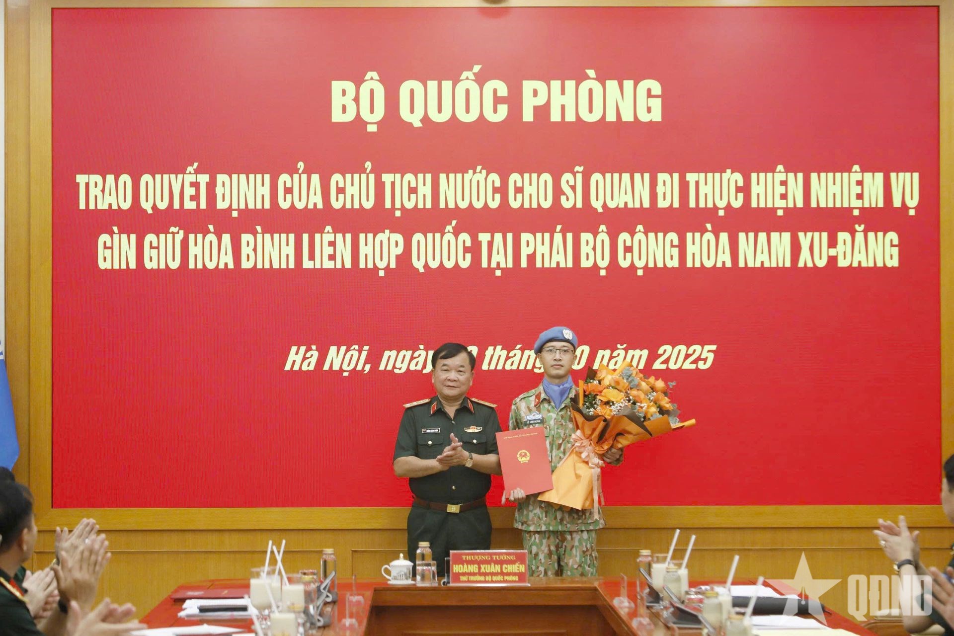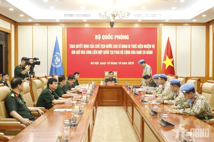 Ngày 10-10, tại Hà Nội, Bộ Quốc phòng tổ chức trao quyết định của Chủ tịch nước, quyết định của Bộ trưởng Bộ Quốc phòng cho sĩ quan Quân đội nhân dân (QĐND) Việt Nam đi thực hiện nhiệm vụ gìn giữ hòa bình Liên hợp quốc.