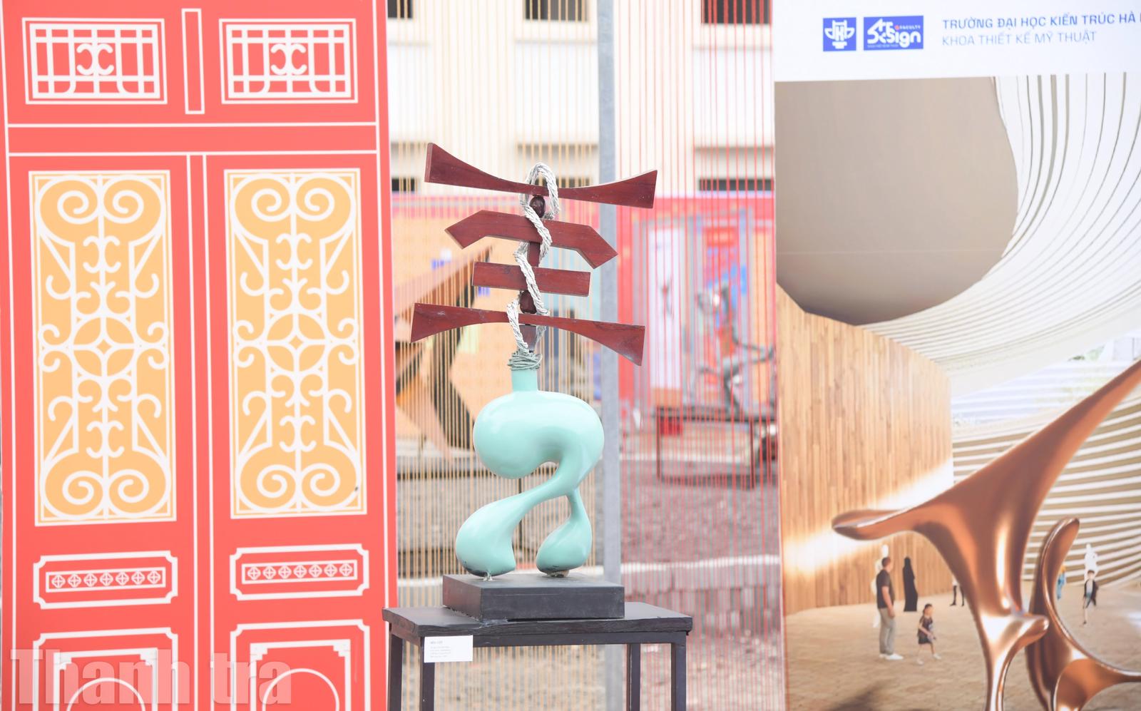 Các tác phẩm trưng bày của sinh viên Khoa Thiết kế Mỹ thuật, Trường Đại học Kiến trúc Hà Nội thể hiện tinh thần sáng tạo, đổi mới, sự kết nối hài hòa giữa nghệ thuật đương đại và không gian văn hóa - lịch sử của khu vực trung tâm Thủ đô.