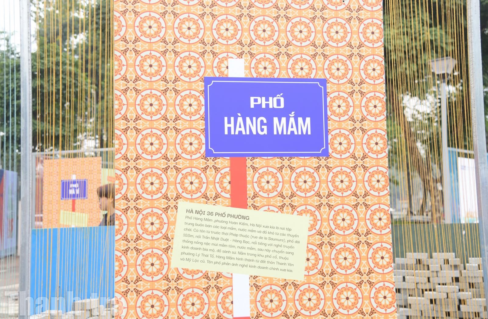 Tên và chú thích tên của 36 phố phường tạo điểm nhấn của Triển lãm. Ảnh: Minh Nguyệt