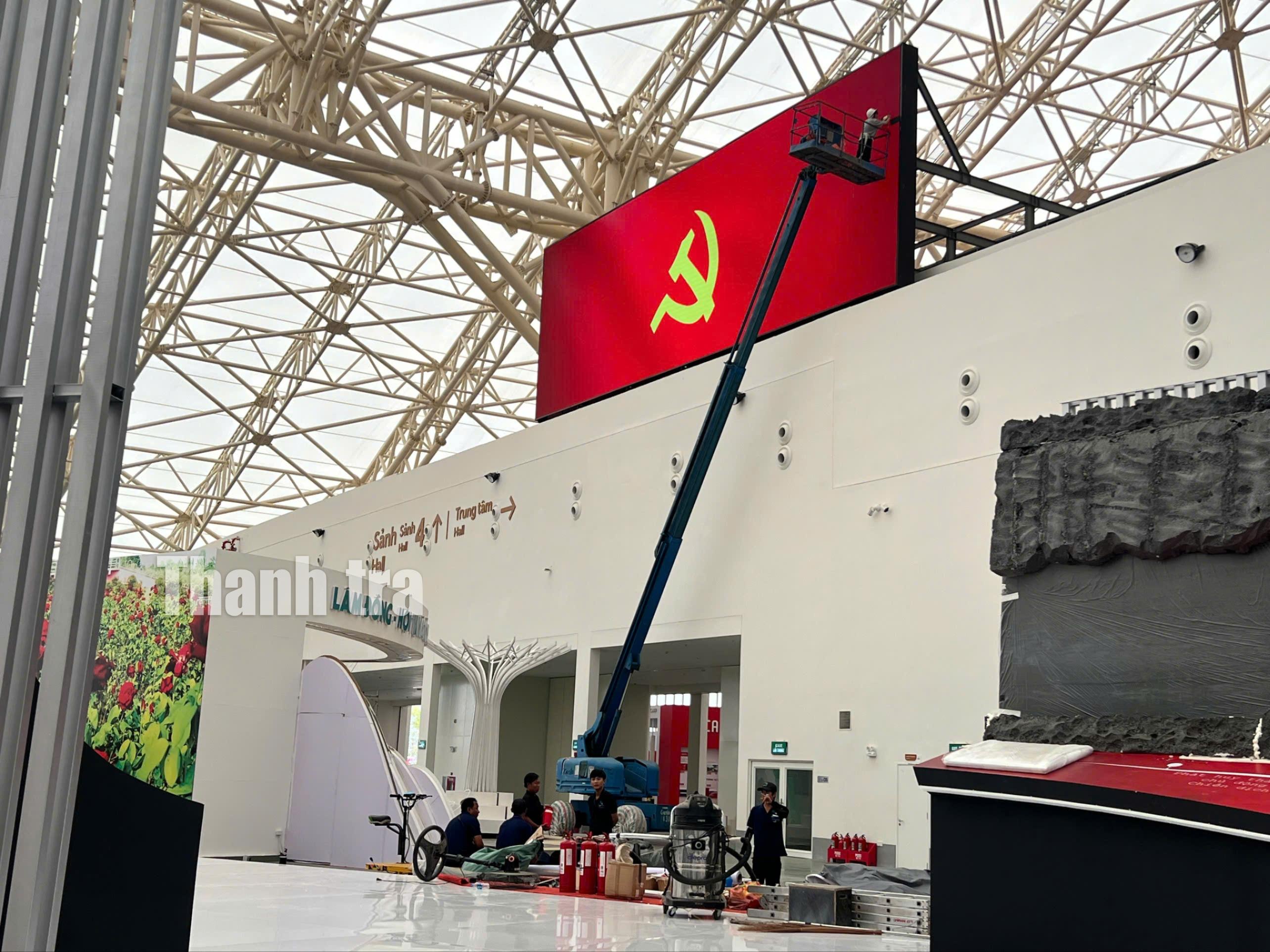 Trao đổi với phóng viên, ông Trần Quang Tiến - Phụ trách thi công không gian triển lãm ngành Thanh tra cho biết, đơn vị đang bố trí nhiều kíp làm việc trong ngày để nhanh chóng hoàn thiện các hạng mục lắp đặt, bảo đảm tiến độ theo yêu cầu.