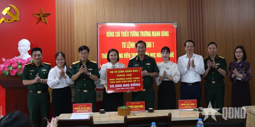 Nhân dịp này, Bộ tư lệnh Quân khu 1 đã trao tặng nhà trường 50 triệu đồng hỗ trợ khắc phục hậu quả sau bão; Thiếu tướng Trương Mạnh Dũng, Tư lệnh Quân khu cũng trích tiền cá nhân trao tặng 50 triệu đồng, thể hiện tình cảm, trách nhiệm và sự sẻ chia sâu sắc đối với sự nghiệp giáo dục địa phương.