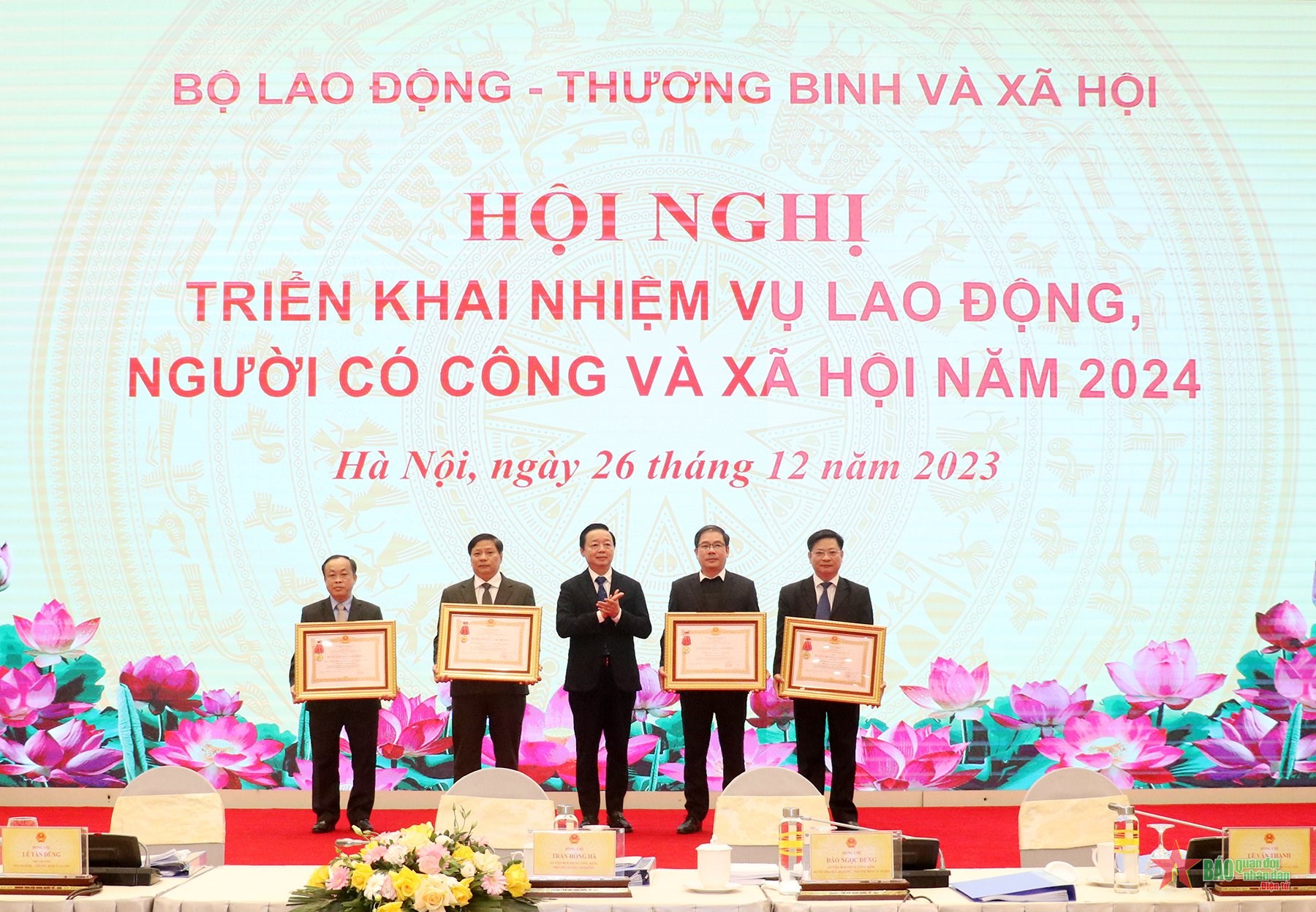 Nhân dịp này, Phó thủ tướng Trần Hồng Hà đã trao tặng Huân chương Lao động hạng Nhì tặng hai tập thể (Cục Quan hệ lao động, tiền lương và Viện Khoa học Lao động và Xã hội) đã có thành tích xuất sắc năm 2018-2022; Huân chương Lao động hạng Ba được trao tặng Bệnh viện phục hồi và chỉnh hình chức năng Quy Nhơn; Trung tâm điều dưỡng, phục hồi chức năng tâm thần Việt Trì có thành tích xuất sắc năm 2018-2022.