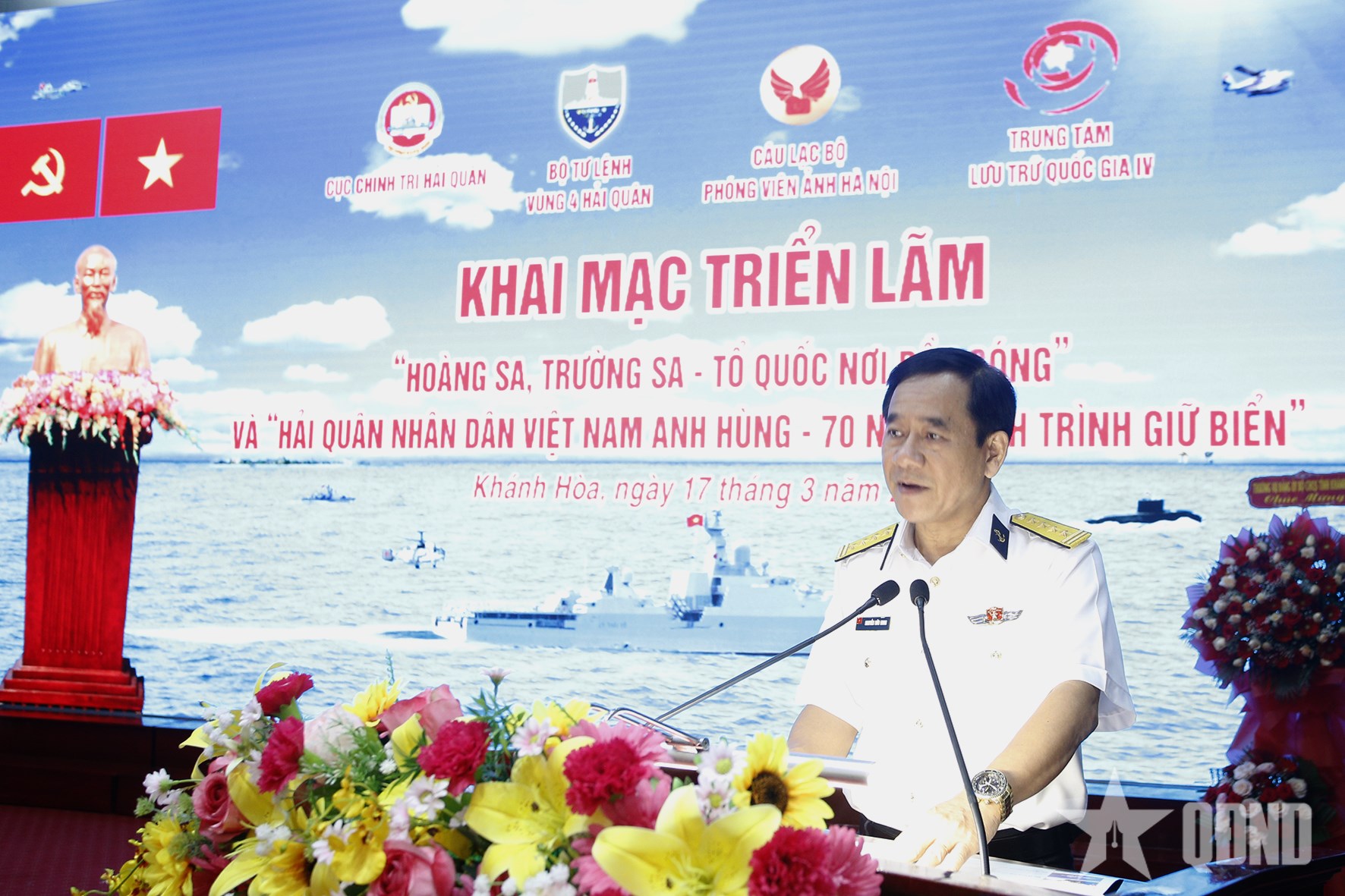 Phát biểu khai mạc triển lãm, Đại tá Nguyễn Hữu Minh, Phó chính ủy Vùng 4 Hải quân nhấn mạnh: "Triển lãm góp phần bồi đắp cho cán bộ, chiến sĩ và nhân dân niềm tin, niềm tự hào về truyền thống vẻ vang của dân tộc, Quân đội, Quân chủng Hải quân và Vùng 4 Hải quân. Đây cũng là dịp để cán bộ, chiến sĩ, nhân dân tri ân các thế hệ cha anh đã cống hiến, hy sinh vì sự nghiệp bảo vệ chủ quyền biển, đảo thiêng liêng của Tổ quốc".