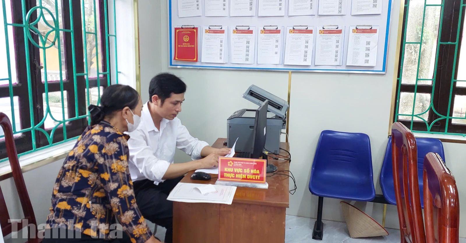 Công tác ứng dụng công nghệ thông tin, chuyển đổi số được đẩy mạnh: 100% thủ tục hành chính của xã được thực hiện trên Hệ thống thông tin giải quyết TTHC của tỉnh; 354 dịch vụ công trực tuyến được cung cấp, trong đó có 165 dịch vụ toàn trình.