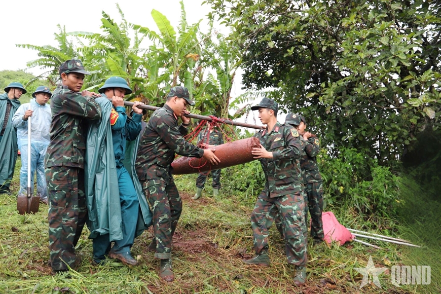 Trước đó, số bom được người dân phát hiện trong quá trình canh tác và báo cáo chính quyền địa phương. Toàn bộ quy trình xử lý được triển khai nghiêm ngặt, bảo đảm tuyệt đối an toàn về người, phương tiện và trang bị. Bộ CHQS tỉnh đã huy động các lực lượng thuộc Ban Chỉ huy Phòng thủ khu vực 1 và 3 tổ chức chốt chặn, cảnh giới và phối hợp sơ tán nhân dân khỏi khu vực nguy hiểm.