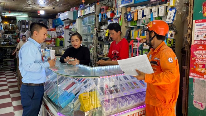 Cơ quan điện lực hướng dẫn người dân thanh toán tiền điện bằng phương thức điện tử. Ảnh: Văn Sông