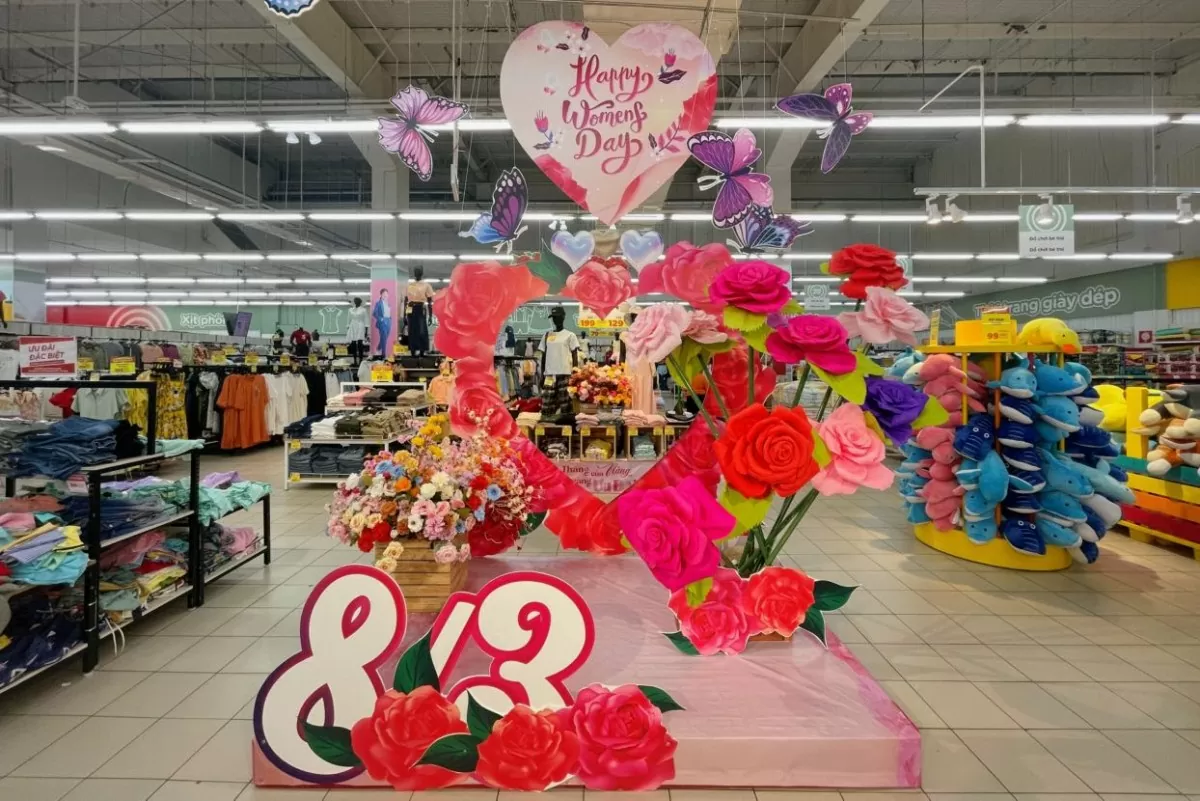 | Nhiều không gian nổi bật được trưng dụng để trang trí cho dịp 8/3 tại siêu thị Go! (Ảnh: Minh Anh) |