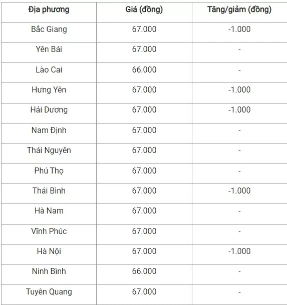 Sau khi giảm một giá, thương lái tại Bắc Giang, Hưng Yên, Hải Dương, Thái Bình, Hà Nội đang thu mua heo hơi với gia 67.000 đồng/kg ngang bằng với tại Yên Bái, Nam Định, Thái Nguyên, Phú Thọ, Hà Nam, Vĩnh Phúc, Tuyên Quang ghi nhận đây là mức giá cao nhất khu vực.
