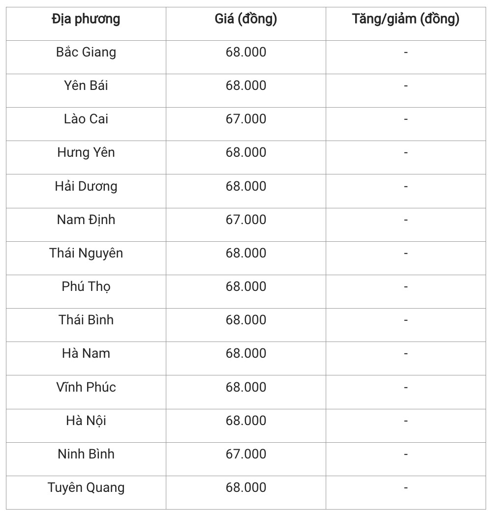 Hiện giá heo hơi khu vực này đang dao động trong khoảng 67.000 - 68.000 đồng/kg. Trong đó, các tỉnh Bắc Giang, Yên Bái, Hưng Yên, Hải Dương, Thái Nguyên, Thái Bình, Hà Nam, Vĩnh Phúc, Tuyên Quang và Hà Nội là những địa phương có giá heo hơi cao nhất khu vực với mức 68.000 đồng/kg.