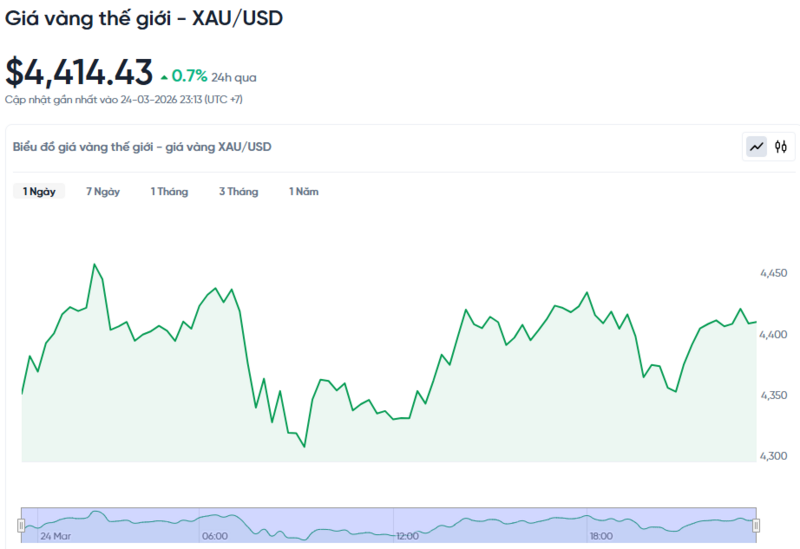 Diễn biến giá vàng thế giới trong 24h qua.