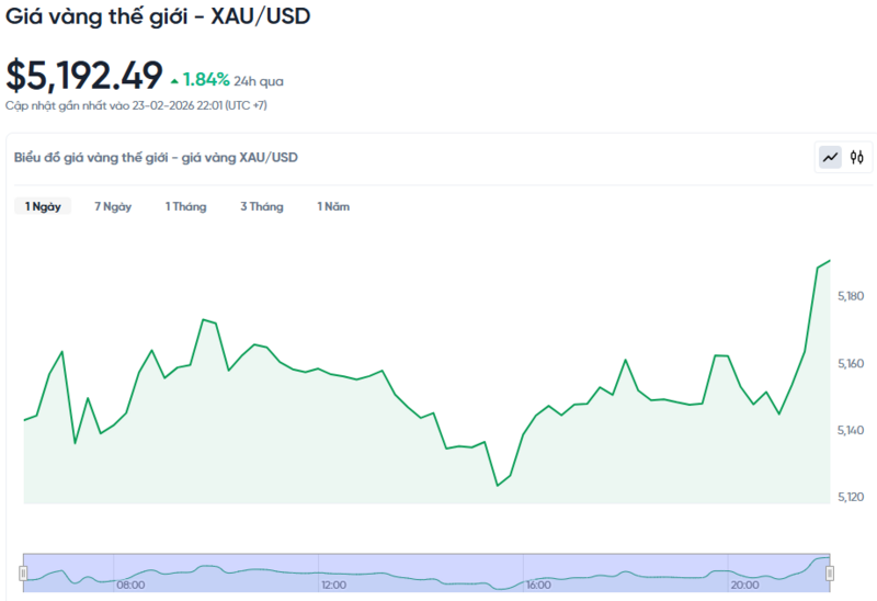 Giá vàng thế giới hôm nay 24/02/2026 và biểu đồ biến động giá vàng thế giới 24h qua