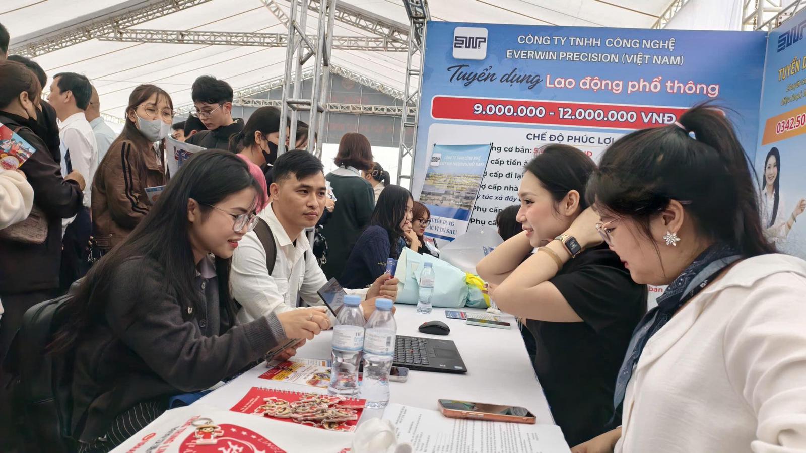 Một số doanh nghiệp cần tuyển số lượng lớn như Công ty TNHH LG Display Việt Nam (KCN Hải Phòng) tuyển khoảng 2.600 lao động, Công ty May Tinh Lợi tuyển 1.200 lao động, Pegatron Việt Nam cần thêm 500, Công ty TNHH Honor, Công ty TNHH GreenWorks cần bổ sung 300 lao động...
