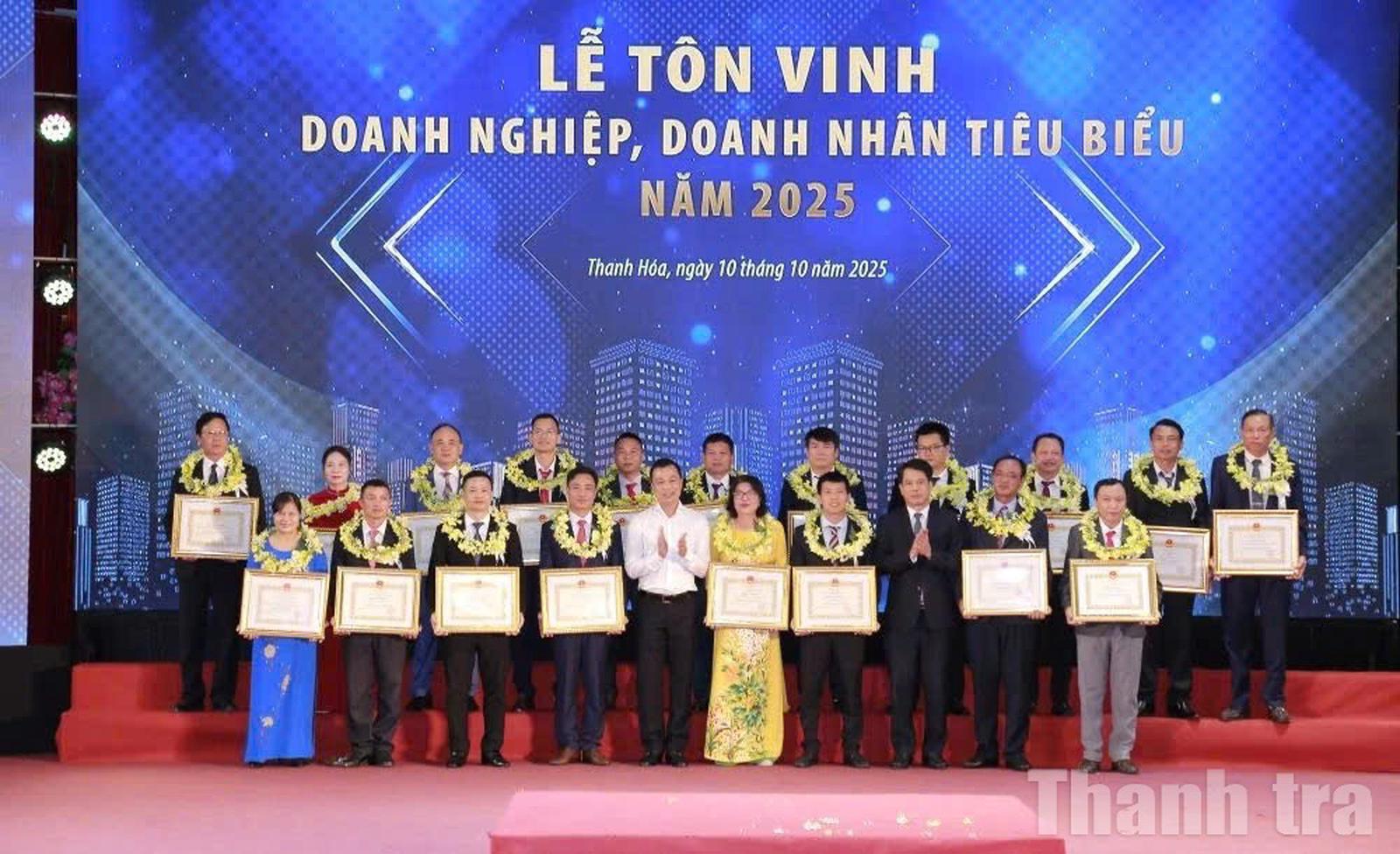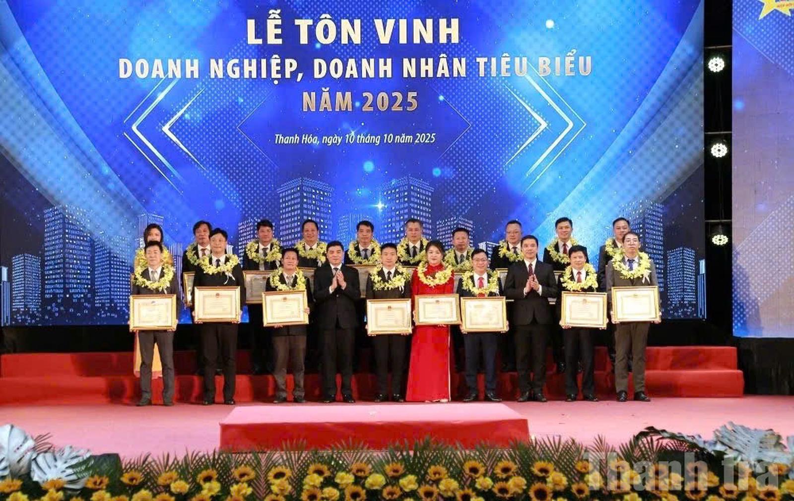Phó Bí thư Thường trực Tỉnh ủy Thanh Hóa và Chủ tịch UBND tỉnh Thanh Hóa tặng Bằng khen cho doanh nghiệp có thành tích xuất sắc trong năm 2024. Ảnh: Văn Thanh