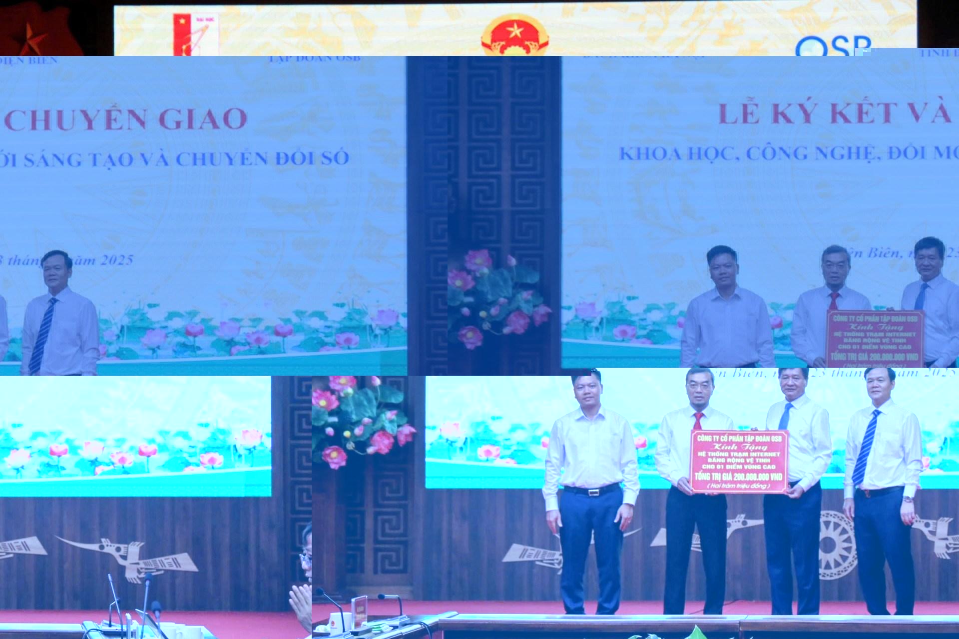Nhân dịp này, Công ty Cổ phần tập đoàn OSB đã trao tặng tỉnh Điện Biên hệ thống trạm Internet băng rộng vệ tinh cho một điểm vùng cao trị giá 200 triệu đồng.