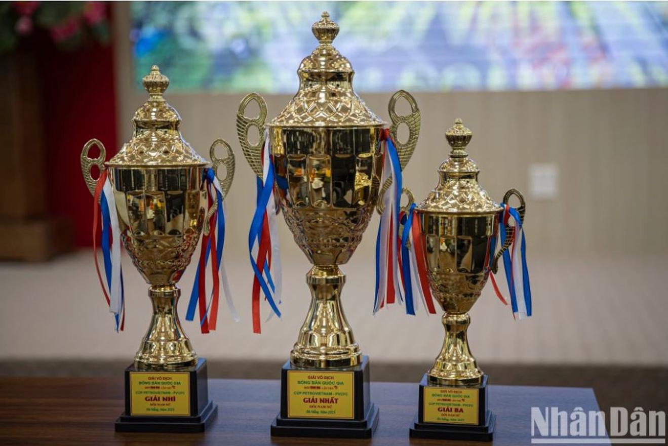 Những chiếc cúp dành cho giải Nhất, Nhì, Ba. Ảnh: Báo Nhân dân